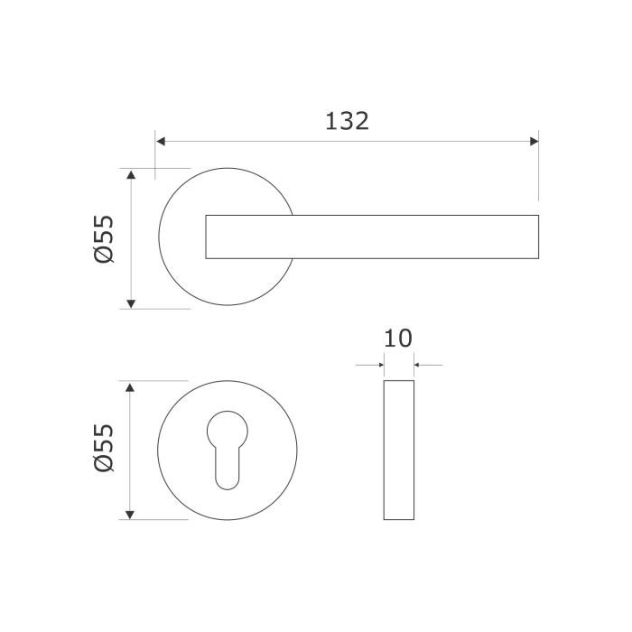 The round rose measures 55mm in diameter and comes with matching escutcheons for neat and secure installation. Supplied as a pair, the handles deliver balanced operation, consistent grip, and a polished appearance suitable for residential, office, or commercial doors.