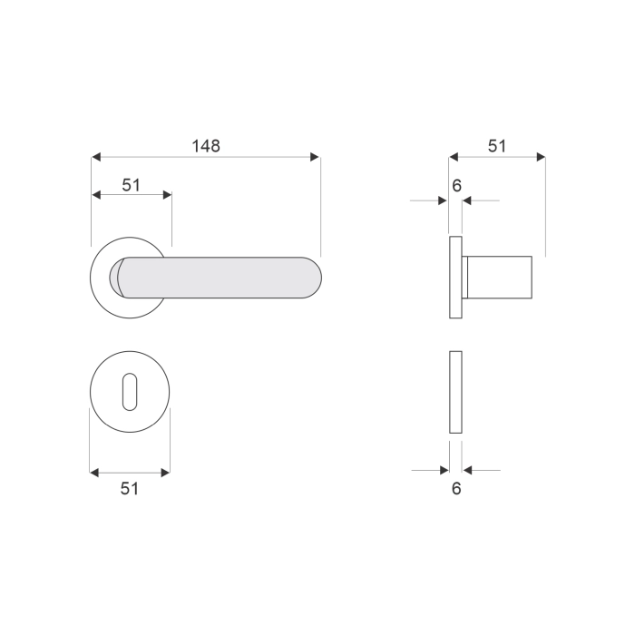 The round rose measures 6mm x 51mm in diameter and comes with matching escutcheons for secure and neat installation. Supplied as a pair, the handles offer balanced operation, consistent grip, and a polished, coordinated appearance, suitable for residential, office, or commercial doors.