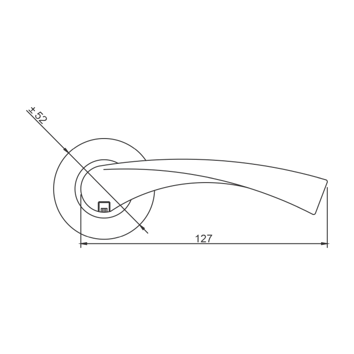 The handle features a round rose measuring 10mm x 52mm diameter, complete with a matching escutcheon for precise and secure installation. Supplied as a pair, it delivers balanced operation, comfortable grip, and seamless integration with standard door hardware.