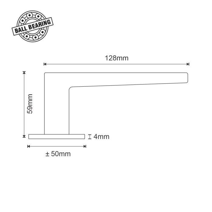 The handle features a round rose measuring 4mm x 50mm diameter, complete with a matching escutcheon for secure and precise installation. Supplied as a pair, it ensures balanced operation, a comfortable grip, and seamless integration with standard door hardware.