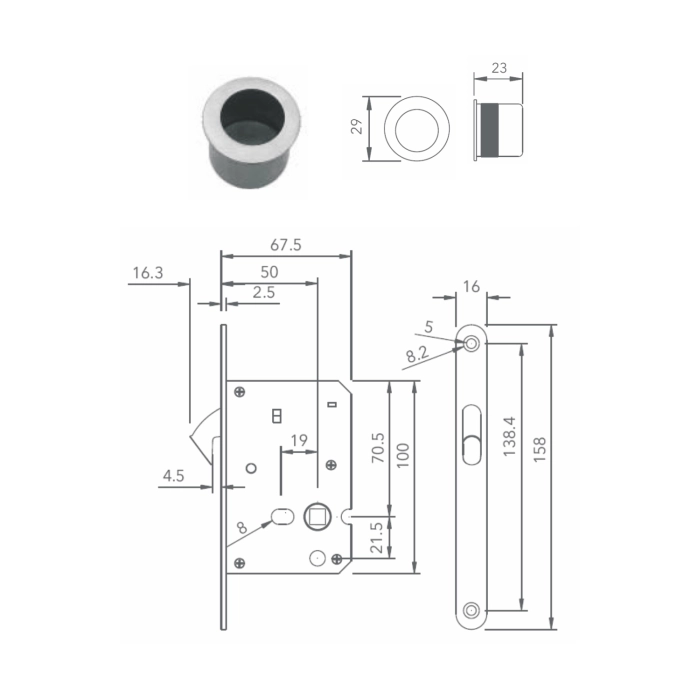 - 50mm backset.